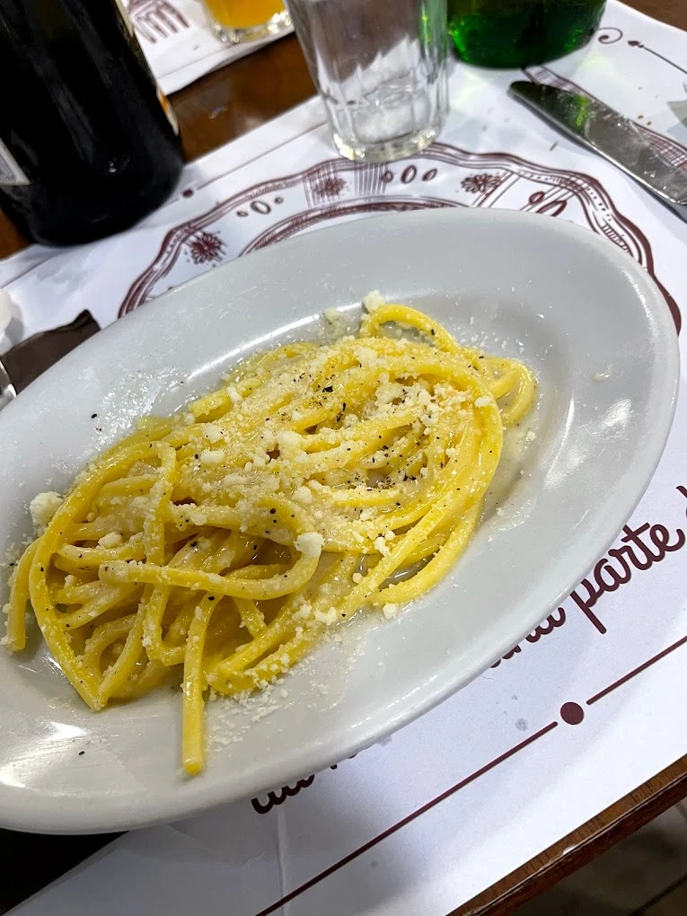 Gusta piatti deliziosi preparati con cura meticolosa, utilizzando ingredienti freschi e genuini. Scegli tra i sapori della cucina romana, come la carbonara o la cacio e pepe, o esplora le delizie della cucina mediterranea, ricca di verdure grigliate e piatti di pesce. Ogni boccone ti conquisterà con l'armonia dei sapori e la passione che mettiamo in ogni creazione culinaria.